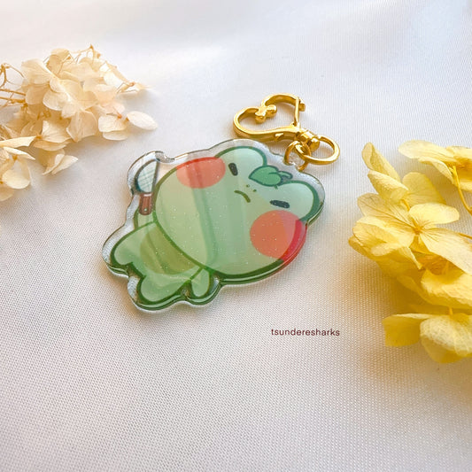 Angy Frog With A Knife Glitter Keychain