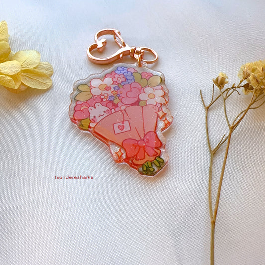 Bouquet Bunny Flowers Glitter Keychain