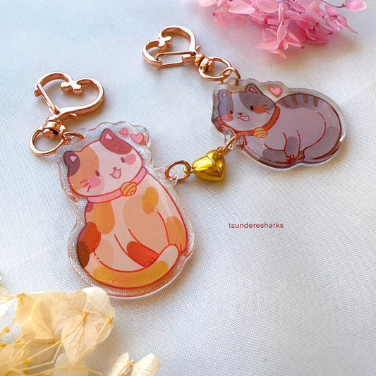 Cat Matching Heart Magnet Glitter Keychains