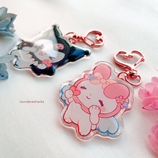 Emo And Pink Bunny Glitter Keychains